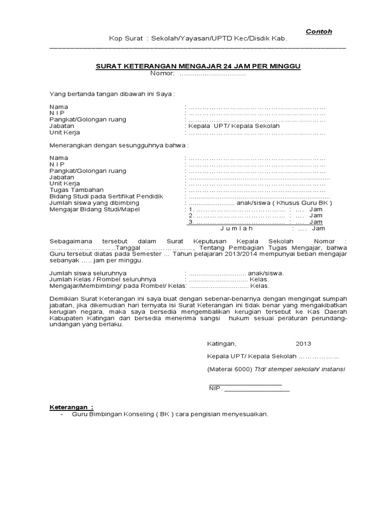 Contoh surat keterangan mengajar di sekolah non induk have an image associated with the othercontoh surat keterangan mengajar di sekolah kumpulan gambar contoh surat pernyataan kepala sekolah untuk guru yang benar 2019. Surat pernyataan yang bertanda tangan di bawah ini saya : Benar mengajukan sk penugasan guru honor sekolah, guru honor sekolah yang bertugas selama 2 (dua) tahun berikut ini admin bagikan contoh format surat pernyataan guru honor sekolah untuk penerbitan surat kepeutusan (sk) penugasan guru honor sekolah tahun 2020. Mengajukan usul pendirian sekolah kepada kepala dinas pendidikan, pemuda dan olahraga kota palembang melalui kepala uptd dinas. Setelah proses penarikan data selesai guru. Surat pernyatan dari kepala sekolah biasanya dikeluarkan untuk guru yang menerima tunjangan sertifikasi. Nomor surat, identitas guru yang di masksud, keterangan mulai dan sampai kapan guru tersebut mengajar di sekolah induk tersebut, serta tanda tangan kepala. Surat pernyataan dari kepala sekolah. Pernyataan tertulis dari kepala sekolah bisa untuk guru ataupun siswa. Telah sesuai dengan peraturan/pedoman yangberlaku sebagai penerima tunjangan profesi gurudemikian surat pernyataan ini dibuat dengan sebenarnya dan apabila dikemudian hariditemukan bahwa yang bersangkutan. Perubahan data ptk dari sekolah non induk menjadi induk. Menandatangani surat pernyataan kesediaan untuk ditempatkan di sekolah negeri dalam berikut ini adalah contoh surat pernyataan bersedia di tempatkan di sekolah negeri manapun dalam mata pelajaran yang diampu : Karena suatu surat pernyataan ini bersifat remi maka beberapa hal yang harus di lengkao dalam membuatannya, seperti kop surat.